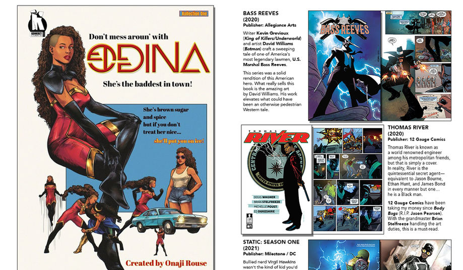 The following are layout examples and promotional images for Afrofutures Magazine published by Advent Comics.